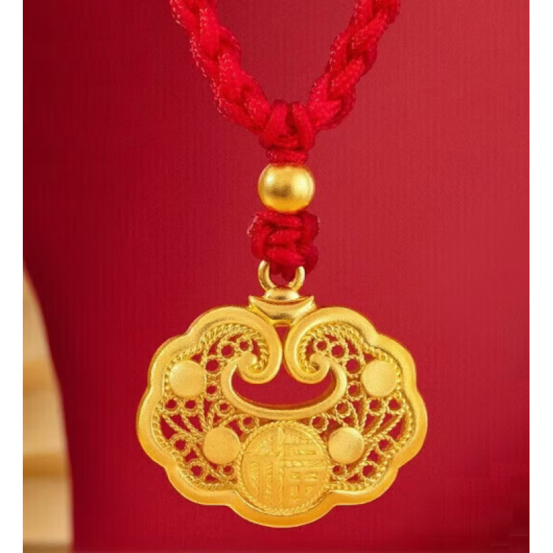 Gold-plated small lucky lock pendant with neck rope