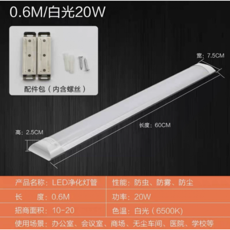 弧形款 白光600MM长 20W 一支装
